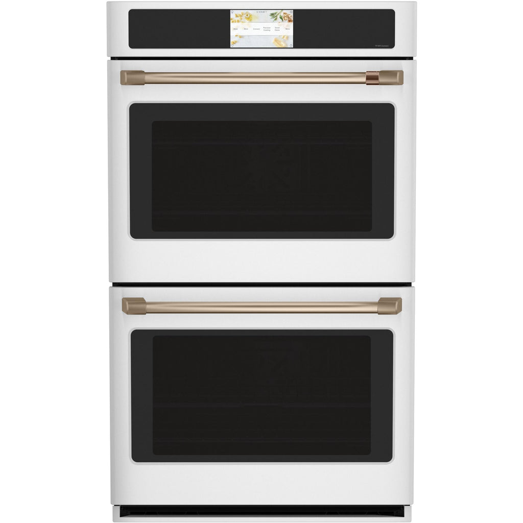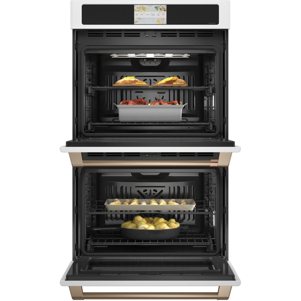Café™ Professional series 30" smart built-in convection double wall oven. This Café double wall oven celebrates style and performance with curated details that make cooking for a crowd a total delight. A no preheat air fry and a dehydrate setting give you new ways to deliver stunning results, and an in-oven camera lets you monitor your food’s progress while you connect with family and friends outside the kitchen. Precision cooking modes and a temperature probe are your secret ingredients for every meal, guaranteeing exact results so you know each dish will be a crowd pleaser. When it comes to clean up, smooth-gliding racks can be left in the oven during the self-clean cycle and a steam clean option is perfect for wiping up messes after each meal.