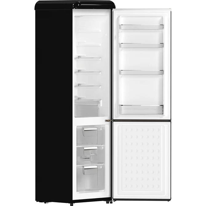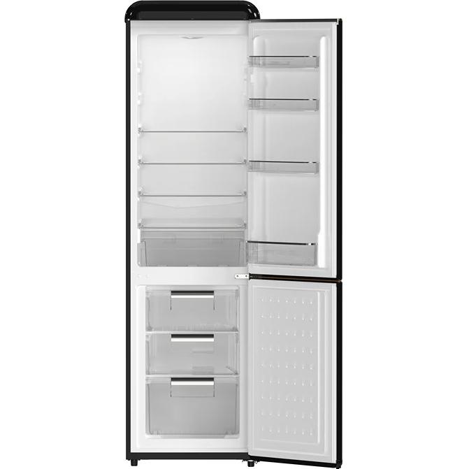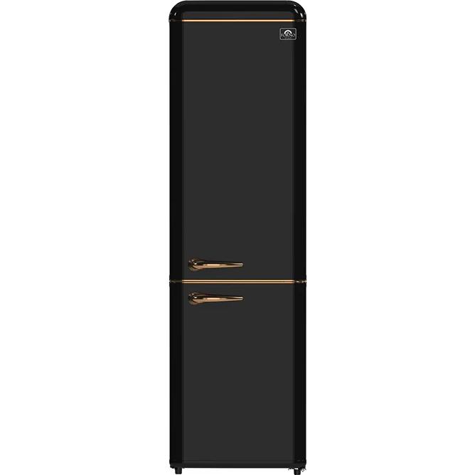 The Storico 22" Retro Bottom-Freezer Refrigerator blends timeless vintage design with dependable performance, making it ideal for apartments, offices, and style-focused kitchens. Its eye-catching retro door and classic Copper-Tone Handles bring authentic nostalgic charm to any space. This compact model offers a surprising 9 cu. ft. of storage with 4 Glass Shelves, a crisper drawer, 3 Standard Door Bins, and a Large 1-Gallon Door Bin for tall bottles. The Bottom Freezer includes 3 Clear Slide-Out Drawers for easy organization. Powered by a reliable Constant-Frequency Compressor, this retro fridge delivers Quiet 41 dB(A) operation. The Direct-Cool System with Manual Defrost helps maintain natural food freshness, while Bright LED Interior Lighting keeps everything clearly visible. The Storico is the perfect combination of mid-century nostalgic style, practical storage, and straightforward, long-lasting reliability.