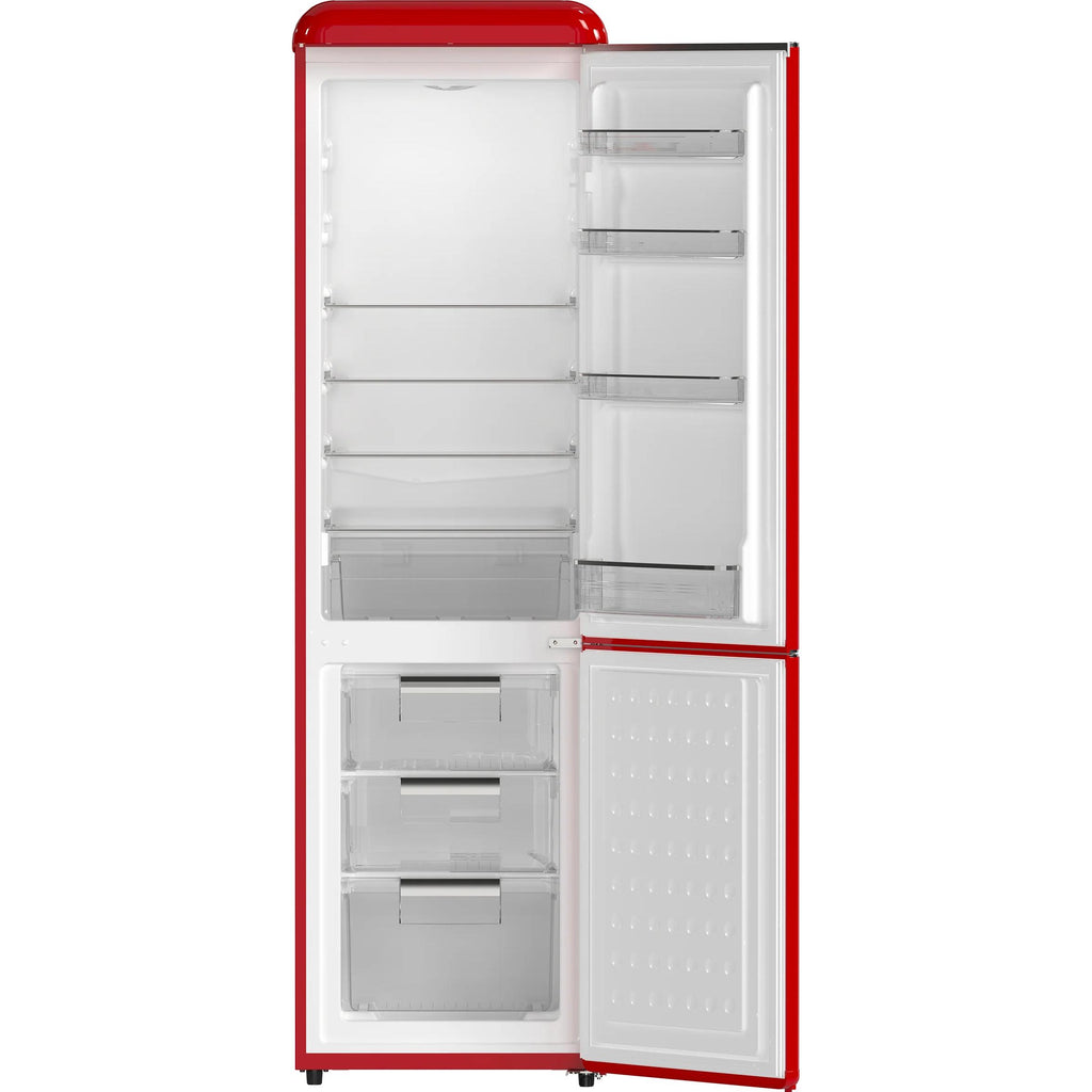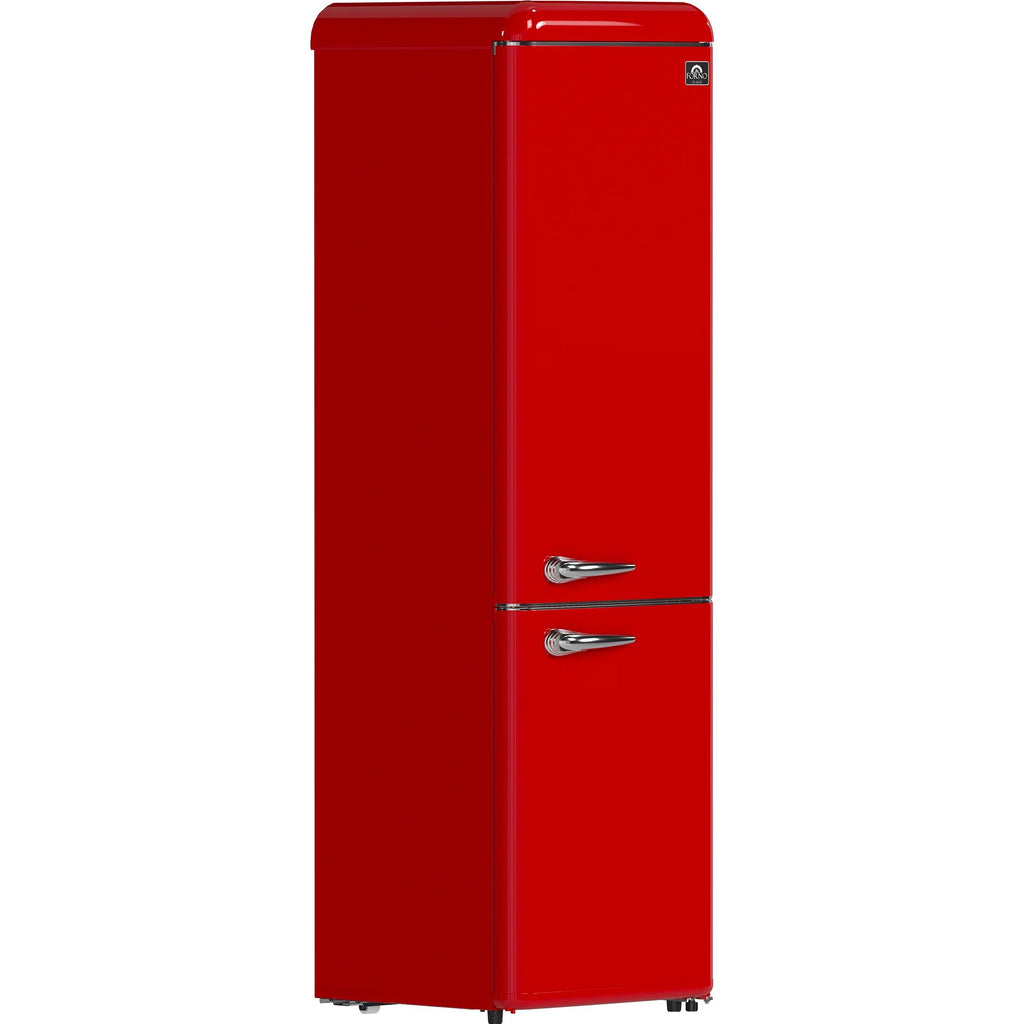 The Storico 22" Retro Bottom-Freezer Refrigerator blends timeless vintage design with dependable performance, making it ideal for apartments, offices, and style-focused kitchens. Its eye-catching retro door and classic Copper-Tone Handles bring authentic nostalgic charm to any space. This compact model offers a surprising 9 cu. ft. of storage with 4 Glass Shelves, a crisper drawer, 3 Standard Door Bins, and a Large 1-Gallon Door Bin for tall bottles. The Bottom Freezer includes 3 Clear Slide-Out Drawers for easy organization. Powered by a reliable Constant-Frequency Compressor, this retro fridge delivers Quiet 41 dB(A) operation. The Direct-Cool System with Manual Defrost helps maintain natural food freshness, while Bright LED Interior Lighting keeps everything clearly visible. The Storico is the perfect combination of mid-century nostalgic style, practical storage, and straightforward, long-lasting reliability.