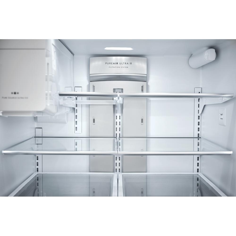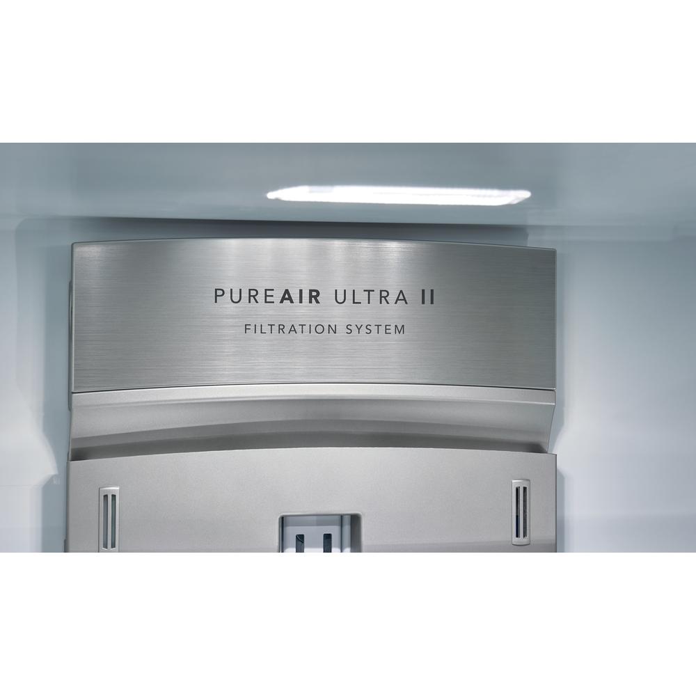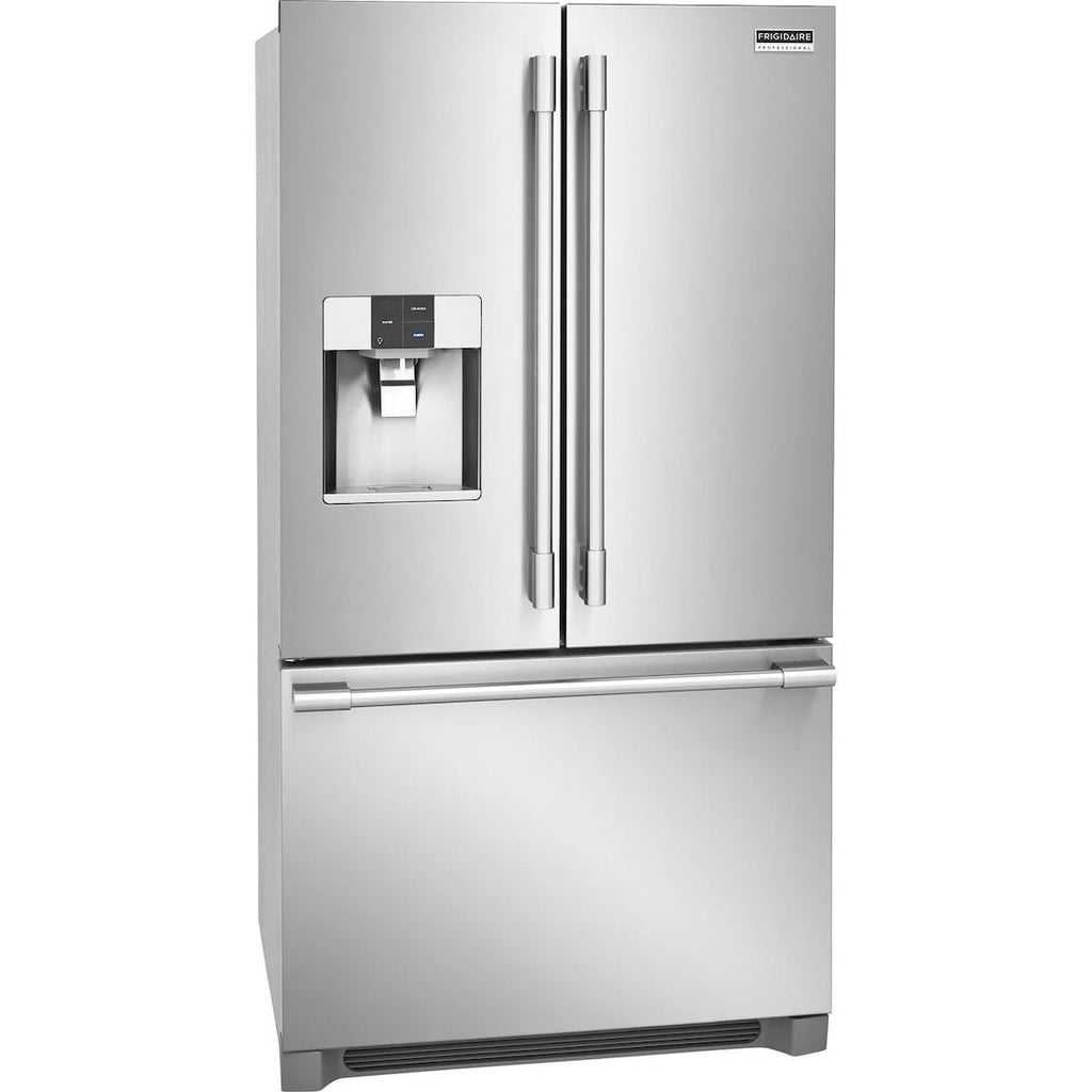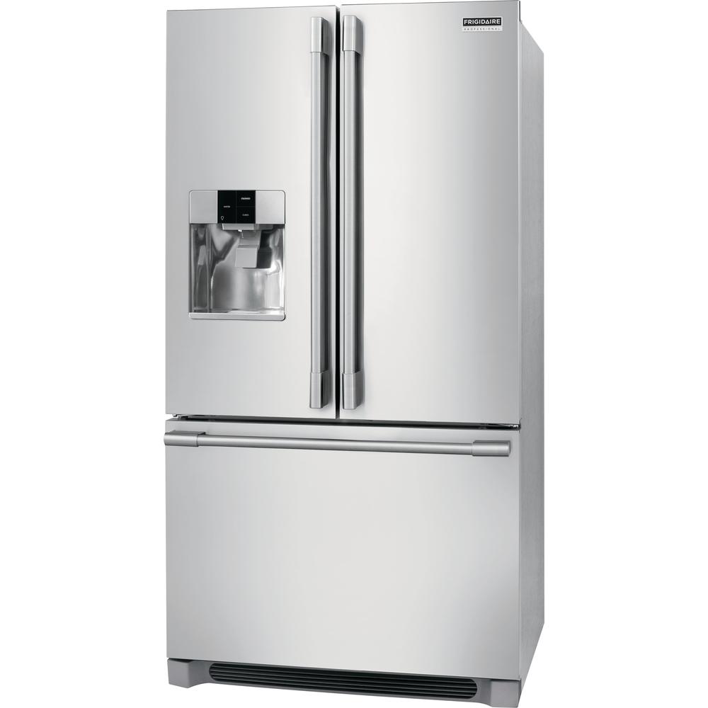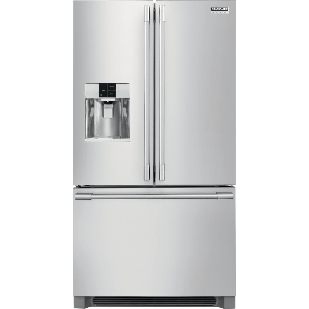 This Frigidaire Professional 36-inch french 3-door, freestanding refrigerator is equipped with an external water and ice system. This model also features the PureAir Ultra® filtration system, the SpacePro™ shelving system and SpacePro™ adjustable crisper bins.