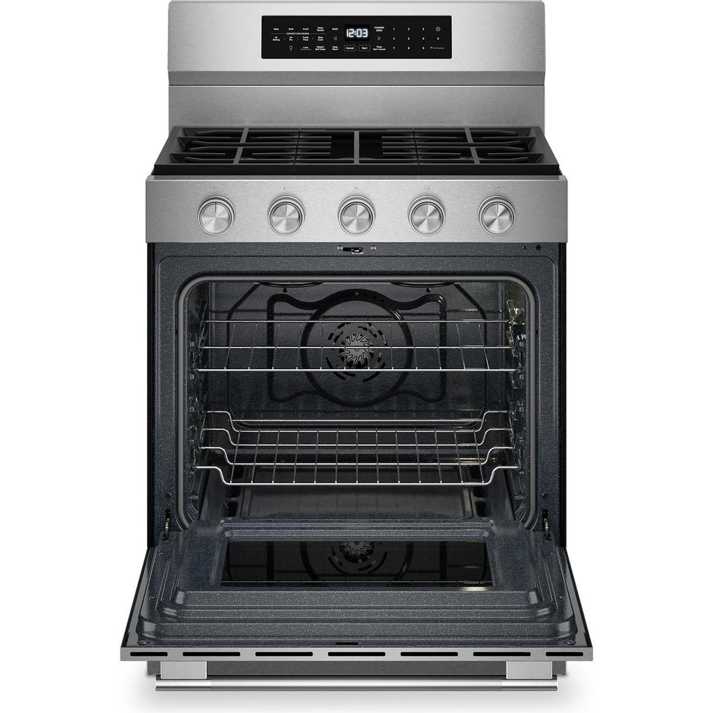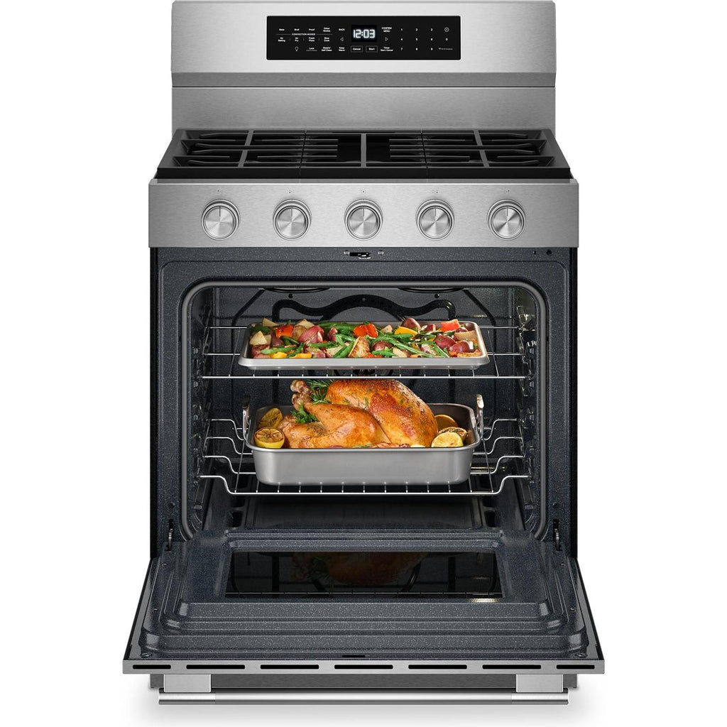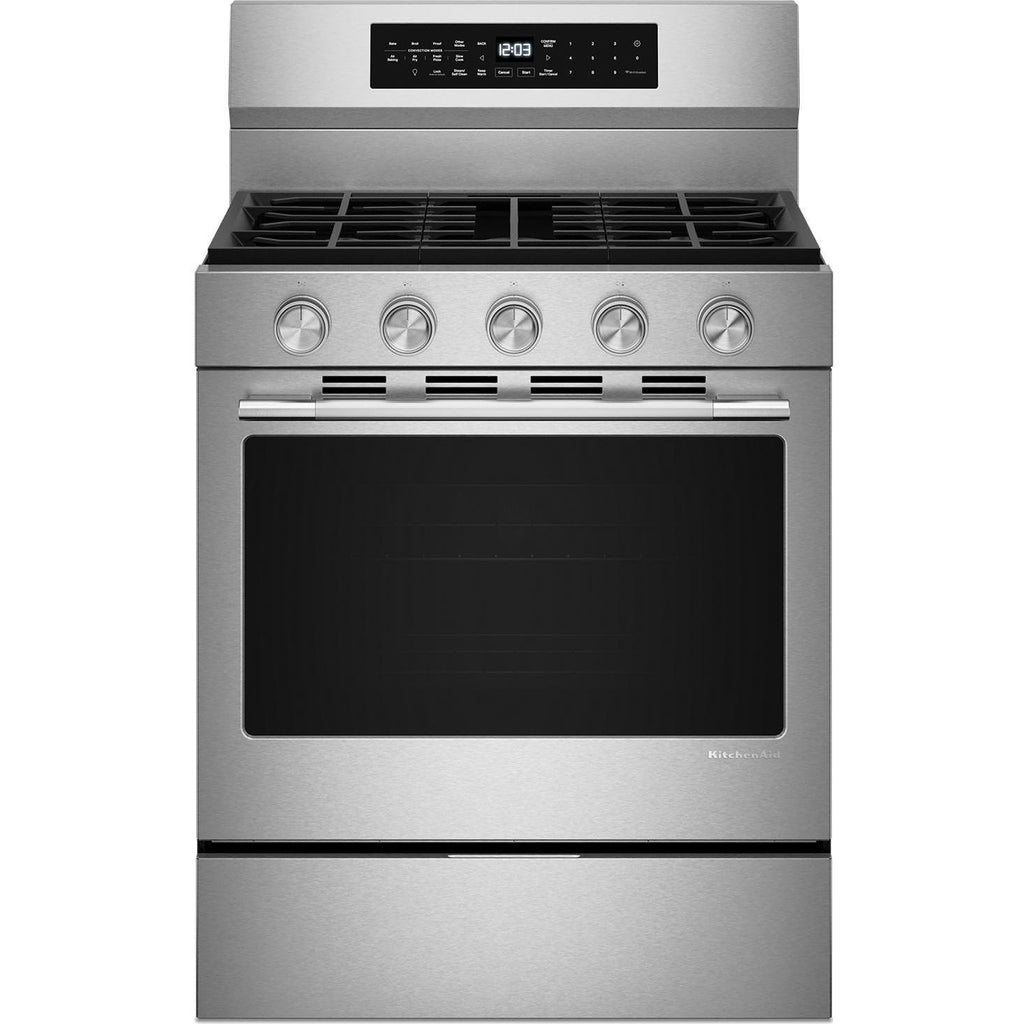 Enjoy a range of possibilities with our most powerful KitchenAid 30-inch Gas Range available. A WiFi-enabled Smart Appliance featuring Convection Cooking Modes that help you get consistent results with optimal temperatures. A spacious 5.0 Cu. Ft. Capacity and optimized oven system design with Rapid Preheat gets your oven to 350°F in under 8 minutes*. Keep your oven clean with two distinct cleaning cycles: the Steam Clean Cycle, perfect for quick, routine maintenance, and the high-temperature Self-Clean Cycle for a deeper clean. *Using Rapid Preheat to 350 degrees when cooktop is not in use.