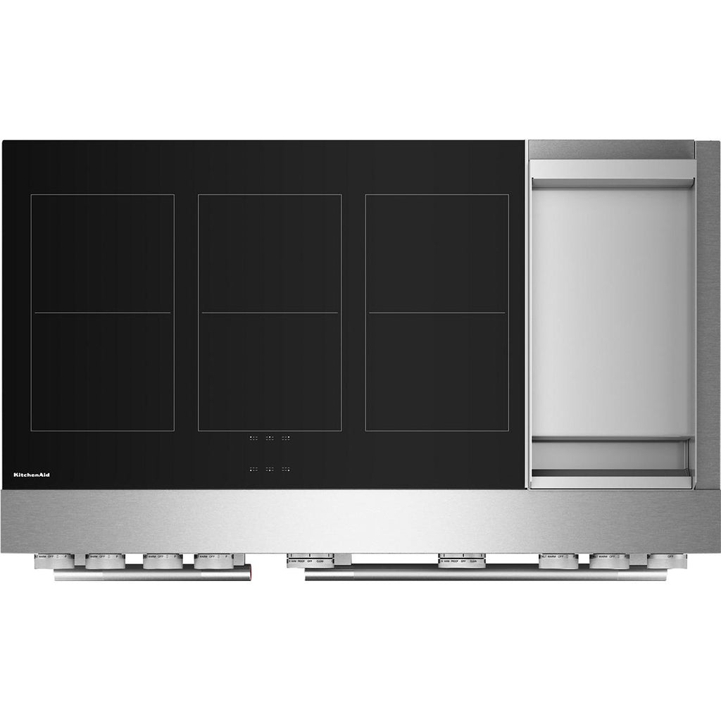 This KitchenAid® 6.3 cu. ft. 48-inch 6-Element Induction Freestanding Commercial-Style Range combines the precision of induction with the power of Air Fry. Sensor-induction cooktop generates heat directly within cookware, and the electric double oven features Even-Heat™ True Convection plus air fry mode that aids in crisping and browning.