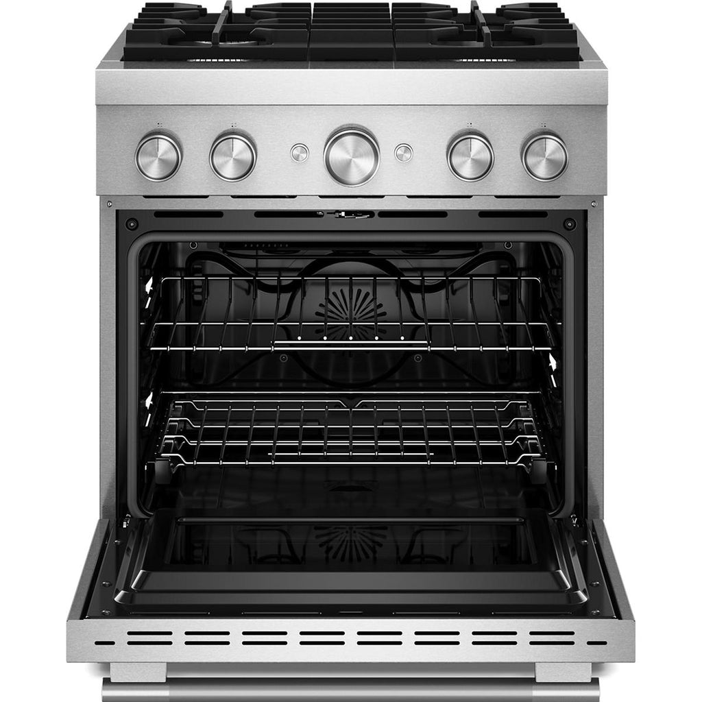 Empower your creativity with a 30-inch KitchenAid® Commercial Style Range with 4 burners. This dual fuel range combines a gas cooktop with the even baking of an electric oven. Two versatile 20,000 BTU Ultra Power™ Dual-Flame Burners offer the power and precision to sear, simmer, stir-fry and sauté. Even-Heat™ True Convection gives consistent baking and roasting, plus air fry mode that yields crispy, golden results.