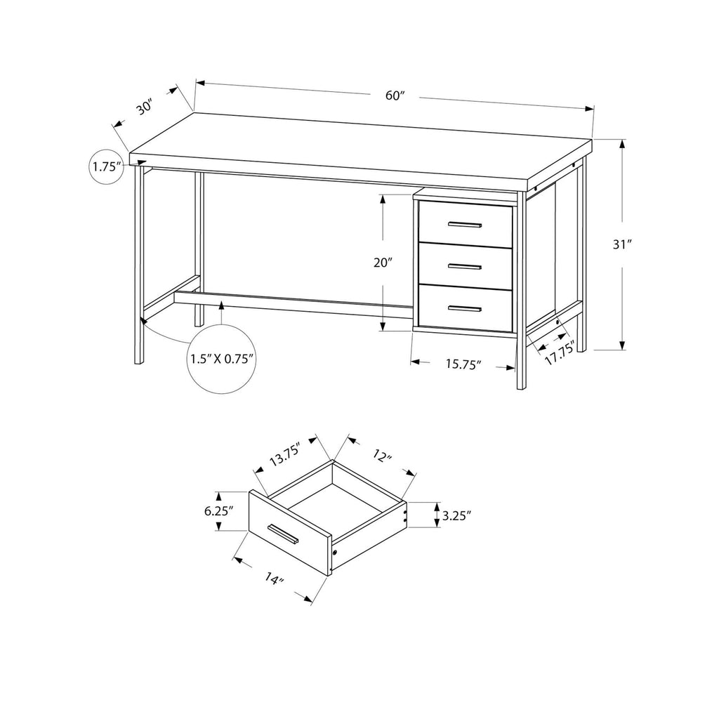 Your workstation needs to be both functional and easy on the eyes. To serve that purpose, this office desk is there for you with all you need to get the job done. A sturdy silver metal frame, 3 convenient storage drawers and a natural pine wood-look finish on all sides - a recipe for success! The 60-inch length provides more than enough surface space for a computer, lamp, notebooks and more.