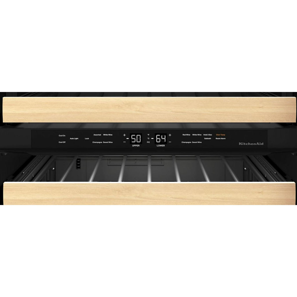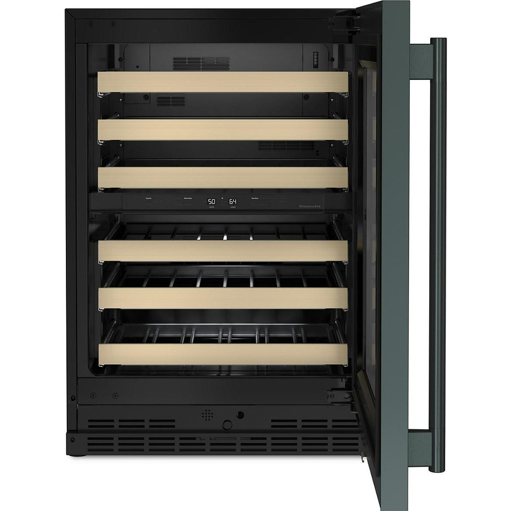 Cette cave à vin sous le comptoir de 24" avec des étagères à façade en bois à extension complète peut accueillir jusqu’à 46 bouteilles de taille Bordeaux standard. L’éclairage DEL activé par le mouvement s’allume à votre approche, ce qui facilite la visibilité de ce qu’il y a à l’intérieur. L’installation entièrement affleurante avec charnières cachées offre un aspect intégré dans les armoires.