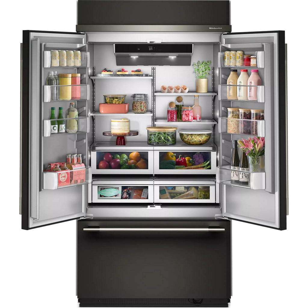 Ce réfrigérateur encastré à portes françaises avec congélateur inférieur rehausse votre style grâce à une finition extérieure PrintShield™ et offre la possibilité de le personnaliser avec des poignées sur mesure. Plusieurs options d’installation vous permettent de choisir entre une installation affleurante pour un look intégré ou une installation en saillie pour un look plus prononcé. L’intérieur Signature Platinum impressionne avec ses accents métalliques. Le système de refroidissement Preserva®+ dispose de plusieurs évaporateurs pour garder vos aliments frais.
