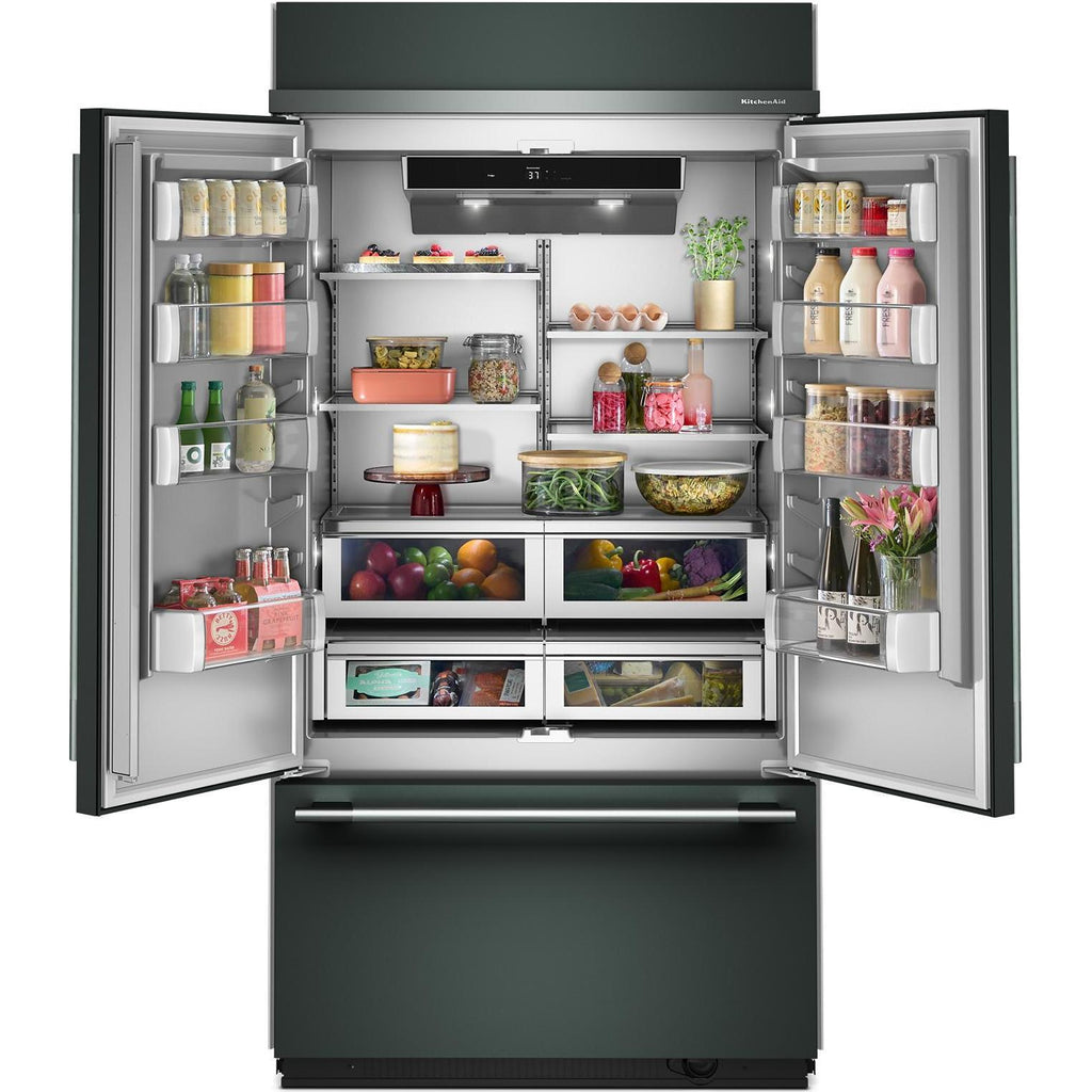 Avec une palette de finis extérieurs et du matériel en métal varié. Vous avez le choix entre les finis suivants : le luxuriant genièvre, le chaleureux minerai noir et le classique acier inoxydable, tous avec des poignées assorties. Personnalisez votre matériel avec des trousses de poignées en laiton, bronze, minerai noir et acier inoxydable.